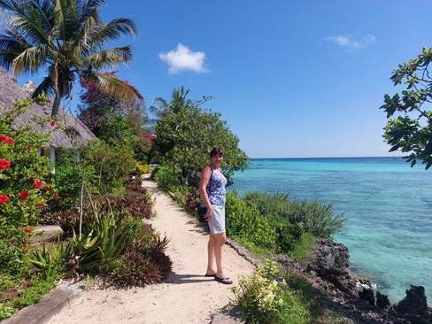 Our second base was Karamba Eco Boutique Hotel in Kizimkazi. Idyllically located with a beach to one side and thatched cottages along low cliffs - incredible sunsets over the sea. There was significant tidal difference here with rocky reef in the distance, but sandy enough to swim most of the time. Beautiful floral grounds and plenty of places to chill. So peaceful. Nowhere to walk to locally, but the hotel food was good and we were only there three nights.